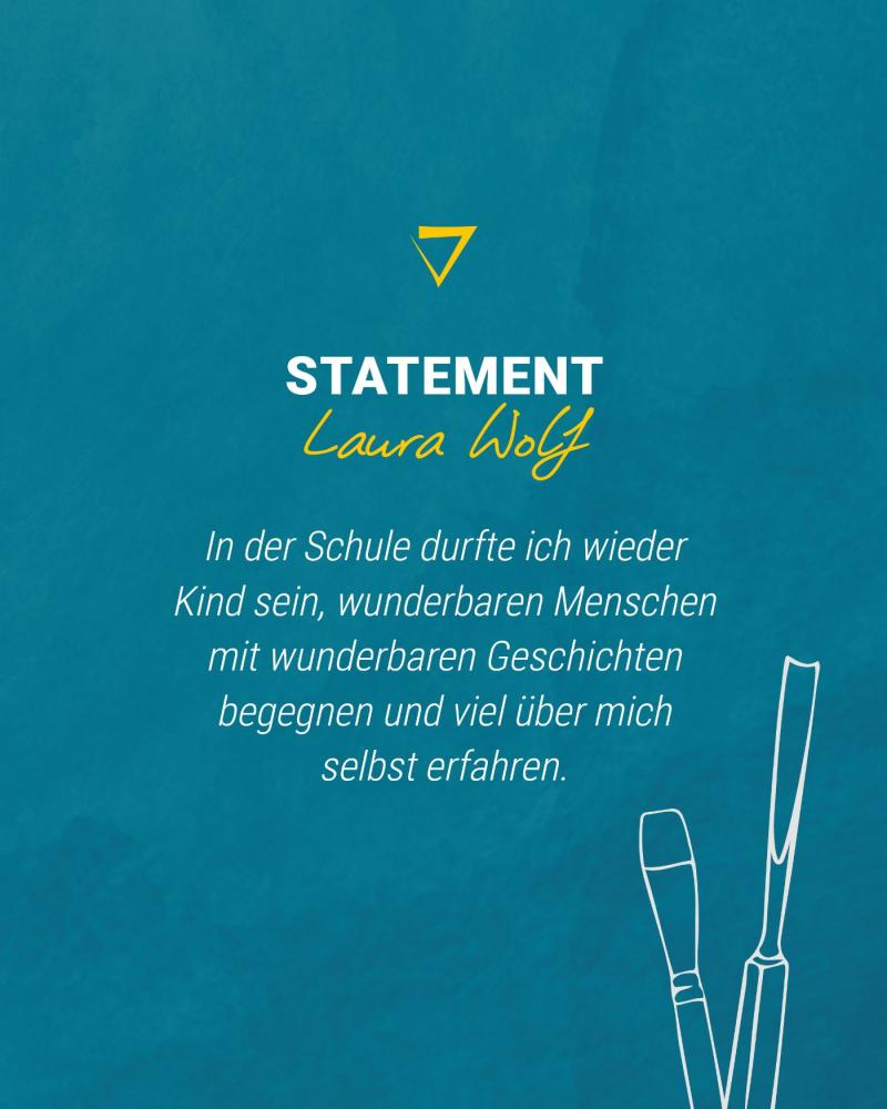 Durch die Schule hatte ich die Möglichkeit mir ein Handwerk und einen kreativen Geist anzueignen, was ich nicht mehr missen möchte. Aber noch viel mehr durfte ich wieder Kind sein, wunderbaren Menschen mit wunderbaren Geschichten begegnen und viel über mich selbst erfahren. Künstlerische Ergüsse in den Werkstätten bis spät am Abend, 'an gueten Ratsch' mit dem Hausmeister, der Putzfrau oder der Heimleitung, am Lagerfeuer sitzen und lachen mit meinen besten Freunden... Das sind Erinnerungen, für die ich auf ewig dankbar sein werde.