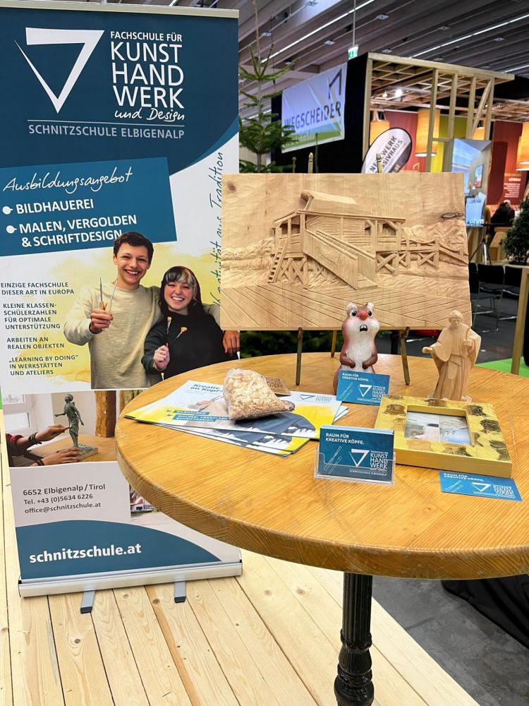 Unser Schüler Daniel Lorbeg vertrat unsere Fachschule Ende Jänner 2026 bei der Tiroler Hausbau & Energie Messe in Innsbruck. Am Stand von pro:Holz – Holz ist genial zeigte er sein handwerkliches Können und begeisterte die Besucherinnen und Besucher mit live durchgeführten Schnitzarbeiten