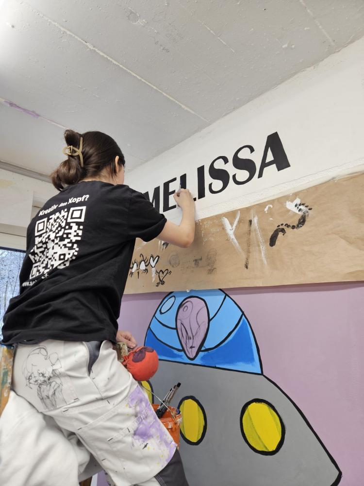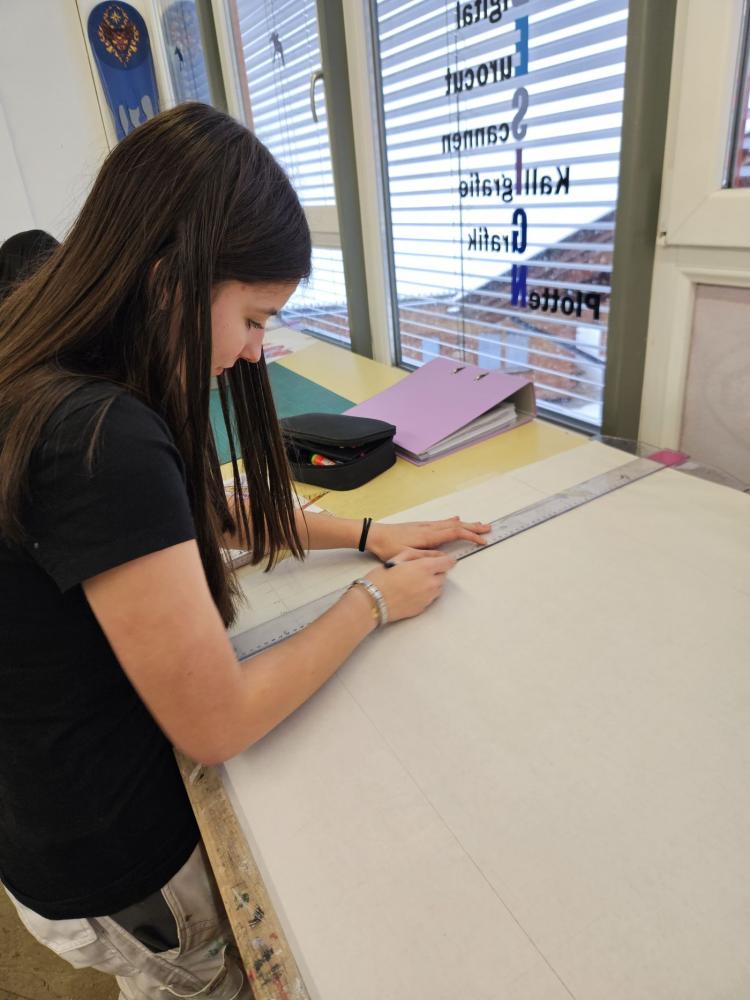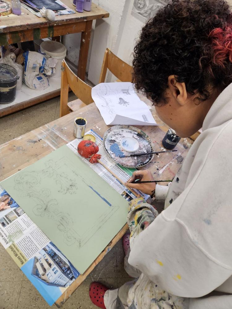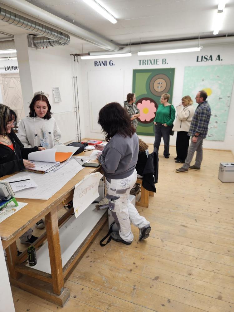 Im zweiten Ausbildungszweig Malerei / Vergolden / Schriftdesign wurden die unterschiedlichen Schwerpunkte vorgestellt. Zu Beginn der Ausbildung liegt der Fokus auf den grundlegenden Techniken des Malerberufes, später kommen weitere Spezialtechniken hinzu. So wird im Fach Vergolden die historische Technik der Polimentvergoldung vermittelt. Im Bereich Schriftdesign steht das Schreiben spezieller Schriften im Mittelpunkt – zunächst mit Feder oder Pinsel, im Laufe der Ausbildung auch die Schriftherstellung am Computer. Kunsthandwerkliche Maltechniken ergänzen die Ausbildung. Im Kunsthandwerksatelier entstehen Flächengestaltungen, verschiedene Putzarten sowie Arbeiten in Kalkspachteltechnik.