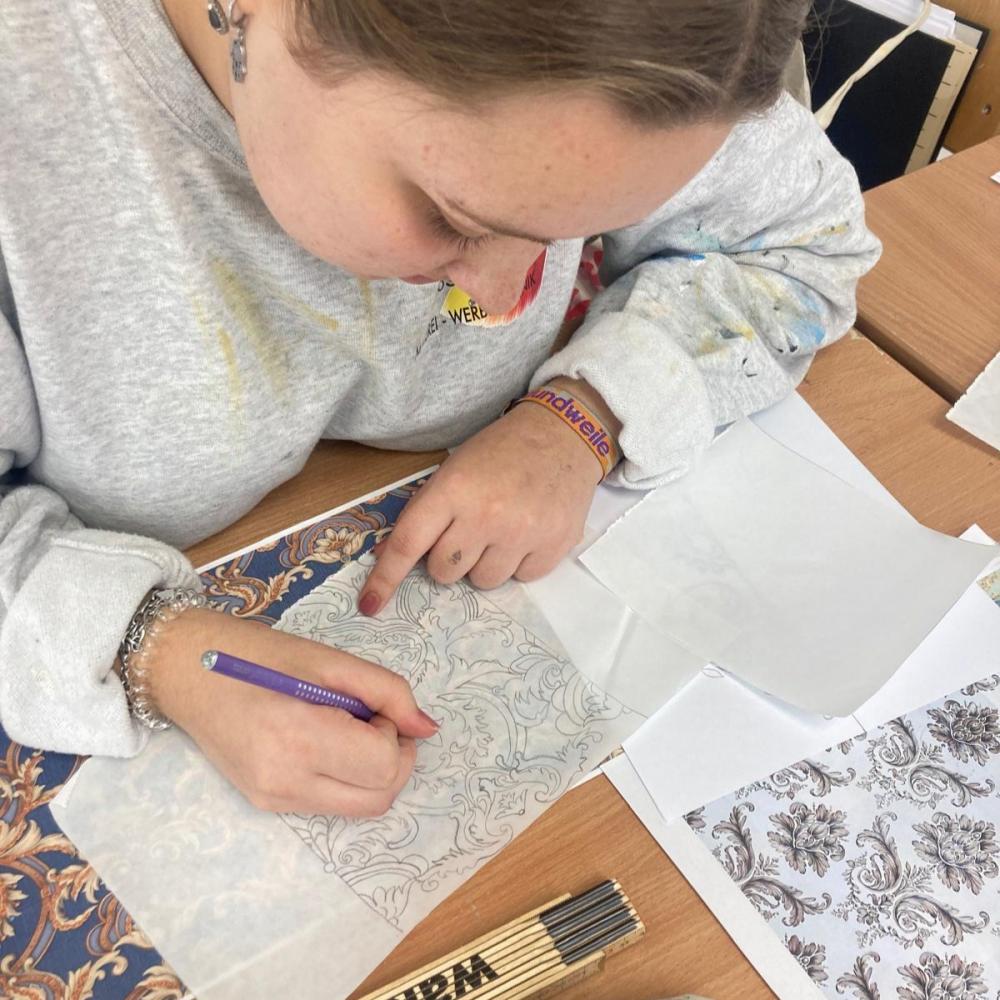 Zurzeit wird in der 4. Klasse der Malerabteilung fleißig an einer Zunftstange für die Tiroler Vergolder gearbeitet.