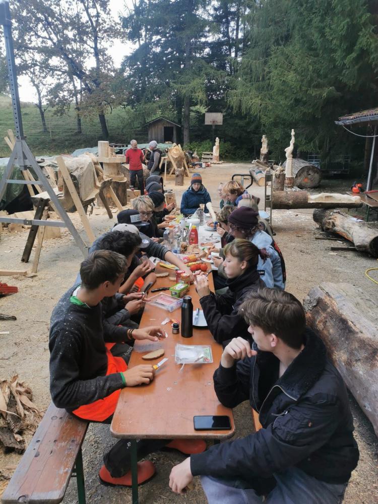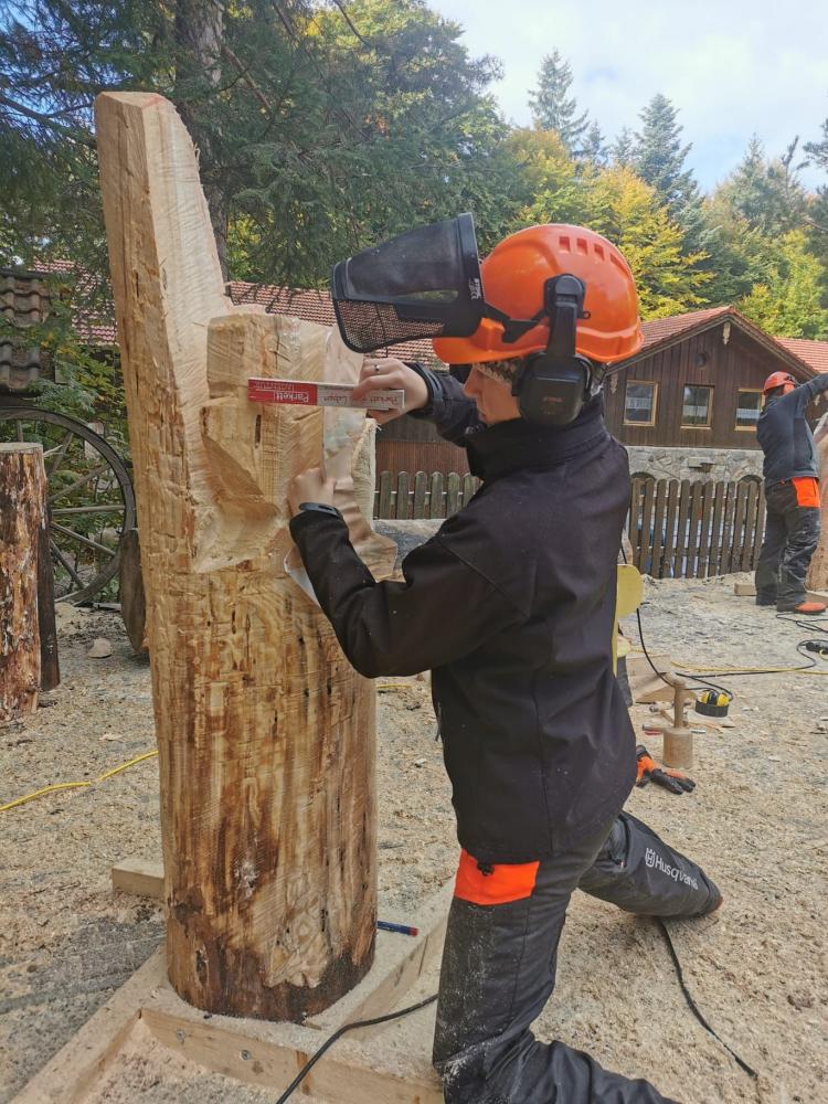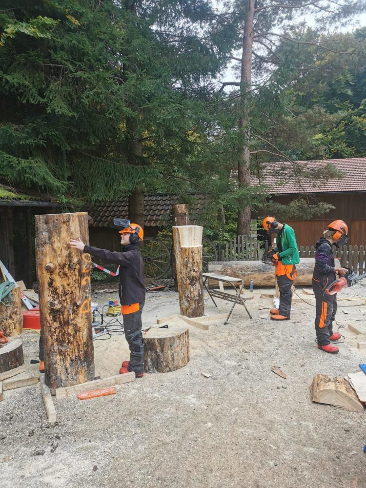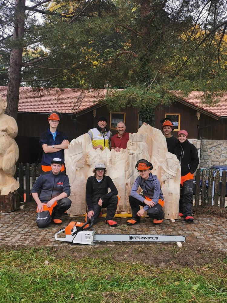 Im Rahmen des Symposiums „Sagen um Berchtesgaden“, veranstaltet von der Holzbildhauerschule Berchtesgaden auf der Neubichler Alm in Piding, haben sechs unserer Schüler/innen gemeinsam mit Lehrer Horst Pali eine beeindruckende Holzskulptur zur Watzmannsage geschaffen.
